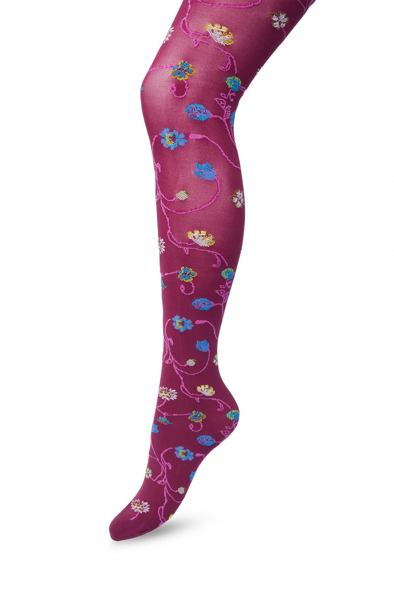80 denier dikke panty met een bloemmotief in mooie kleurcombinaties