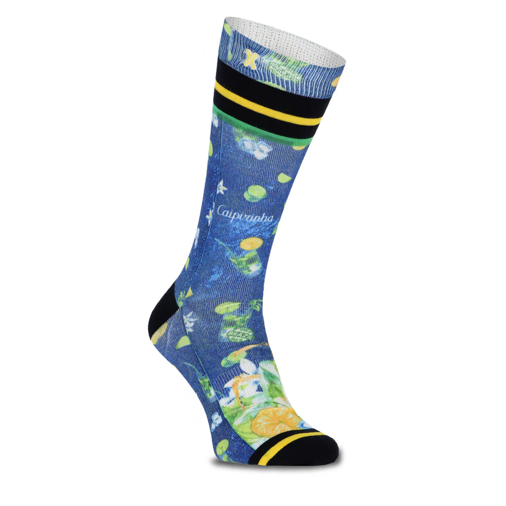 Opvallende navy sokken van XPOOOS × AFNF “Caipirinha” — comfortabele mix van katoen, polyester en elastan, perfect als vrolijke finishing touch onder je outfit.